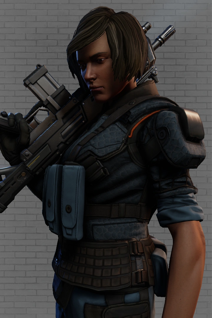 Cassandra’s quick intervention on the operating table saved Dyne’s life. As he recovered, Dyne explained that he’d deserted the UNSC and tried to make his own way in the galaxy before arriving on Talitsa. Dyne shared Cassandra's hatred of the Syndicate and their bloodstained corruption. Frustrated at the injustice he'd seen across the frontier Dyne wanted to do more than simply keep his head down and live an ordinary life. Despite his injuries, Dyne proved useful in a fight when a local street gang tried to rob the clinic. A bemused Cassandra watched Dyne don a surgical mask to hide his face and rush out into the streets to track down the gang's leader. Less than twenty-four hours later Talitsa's Syndicate network was in an uproar and Dyne returned to the clinic in a stolen exoskeleton. Having run a gamut of Syndicate conspiracies in the past day, Dyne announced his intention to fight the Syndicate as a vigilante called “the Renegade.” Cassandra found Dyne’s plan incredibly reckless—but his reckless idealism coupled with his shared role as a fellow Spartan deserter was a welcome change from Simon’s brutal cynicism. Cassandra took little convincing to agree to take part in Dyne’s crusade against the Syndicate.