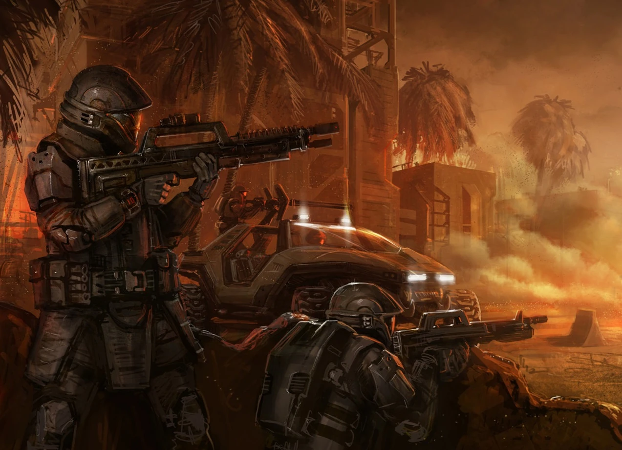 Redmond Venter during the fighting on Teletha. Out of two thousand ODSTs deployed to the planet, he was among the handful of survivors.