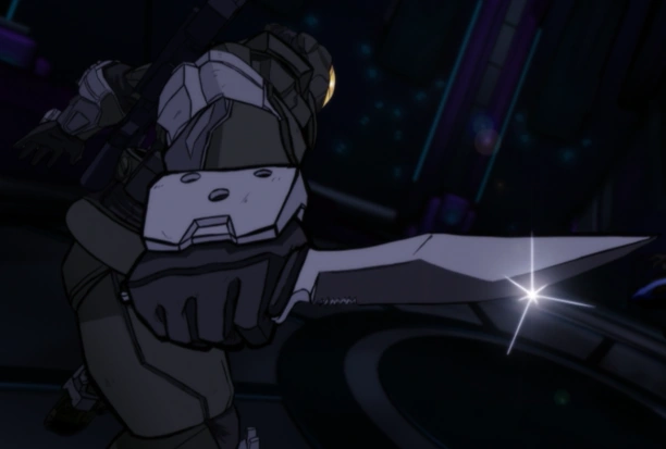 Stray arrived at the former Covenant support station Faithful Respite, now repurposed as the Cleansing Blade’s staging area. While the Covenant’s end had stripped Stray of power, Shinsu ‘Refum had profited: the former special operations commander now commanded his own fleet of warships. But without the Kru’desh Stray was of no use to Shinsu, who would not even grant the destitute Spartan an audience. Frustrated and out of options, Stray wandered the crowded station without realizing that he’d entered another enemy’s crosshairs. Only an abrupt warning from Juno saved him from assassination as he once again faced down Amy, now repurposed as an ONI agent named “Hera.” Blaming Stray for Joshua’s death at the hands of the Kru’desh, Hera abandoned her covert reconnaissance mission for a chance to kill the traitor. Their skirmish was quickly ended by the intervention of Shinsu and his warriors.